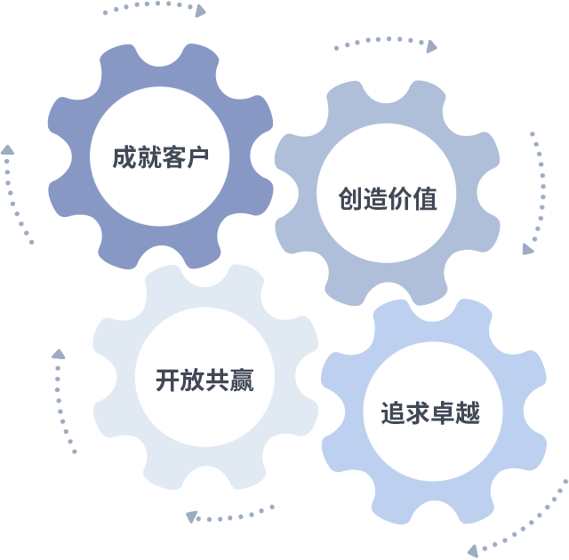 成就客户是一切决策的出发点,创造价值是衡量所有工作的标准,追求卓越是j9九游会做事做人的态度,开放共赢是j9九游会的格局也是最终的结果。价值观的齿轮环环相扣,推动着组织里的每个人不断向前。